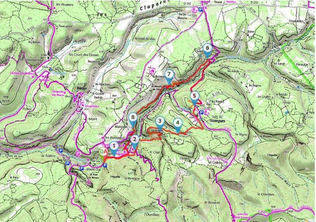 A loop around the green valley of Aigue Brun, a gently flowing stream of the Luberon enclosed between imposing cliff faces. We will go through the village of Sivergues and the “Baume de l’Eau” and see some troglodytes houses and cascades. Lunch: Bring a picnic lunch. Dogs: Okay Difficulty: 5 Length: 8.1 Elevation: 500 Duration: 3 hours 30 minutes