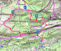 Dogs: OK Difficulty: 5 Length: 2h + Potluck + AGM Distance: 5.7 km Elevation: 130m Meeting point: Parking de l'Aurigon. Proche du - Bayon (torrent) Affluent de l'Arc Directions: There are several car parks called ‘Roques Hautes’ so ensure you use these GPS coordinates. Hint - coming from Aix, drive through Le Tholonet, after the cross roads towards Beaureceuil/Chateauneuf-le-Rouge, keep straight towards St Antonin for a few hundred meters and just after a small bridge, turn left onto a concrete road and continue to the last car park (you can’t go any further). There is a small low sign saying ‘Roques Hautes’ at the entrance to the concrete road.